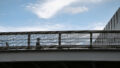 People walking on an overpass